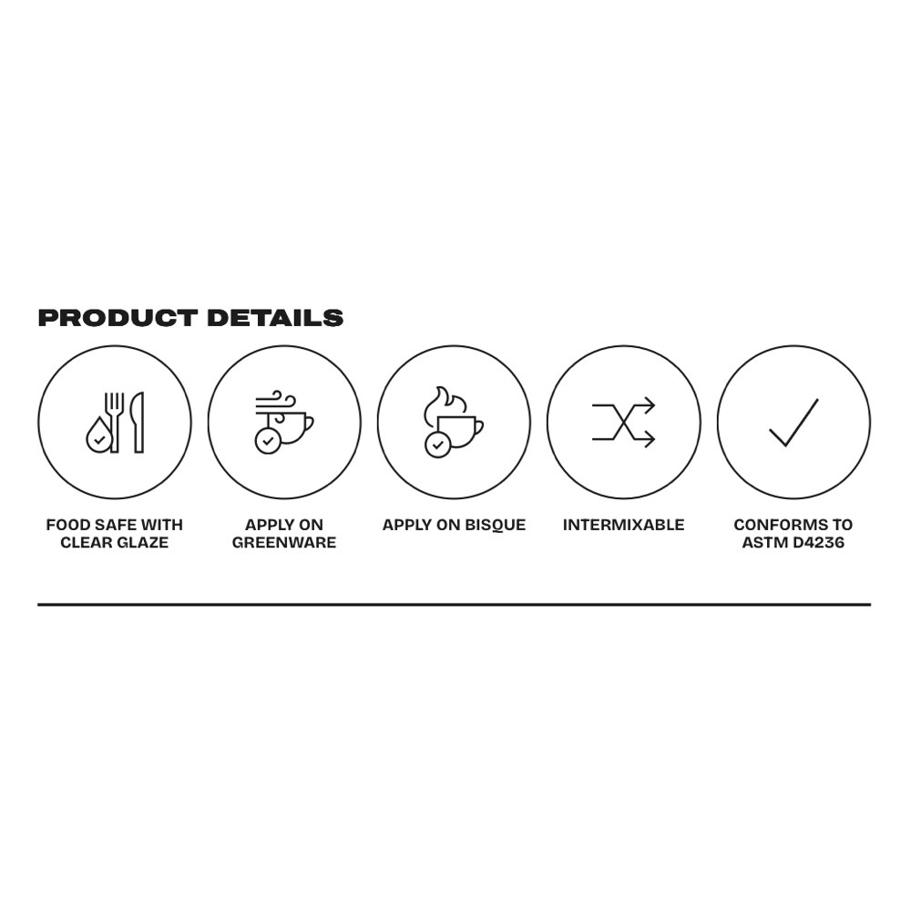 Forget flat surfaces. The 3D Trailing Glazes H bring that precise, raised, dimensional magic to your middle-fire bisque. Whether you’re going for subtle texture or full-on sculptural vibes, this glaze fires to a silky satin matt finish. Mix colors like a mad genius or tint them with One Stroke range. Because your art, your rules.