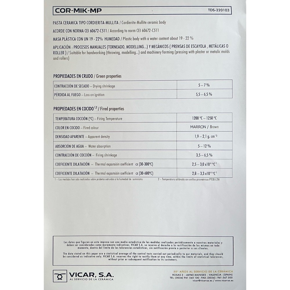 COR-MIK-MP Spanish stoneware brown clay from VICAR, S.A.