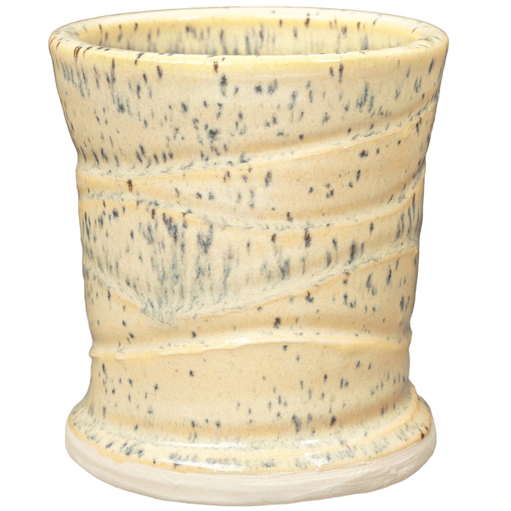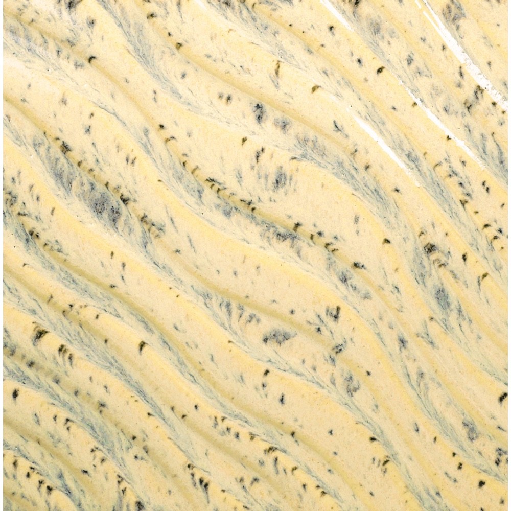 PCF-63 Sun Shower is a pale yellow interspersed with fine, dark speckles. It breaks across textured surfaces and develops a warm blush float when thick. Great for layering with other glazes as a base or top coat.