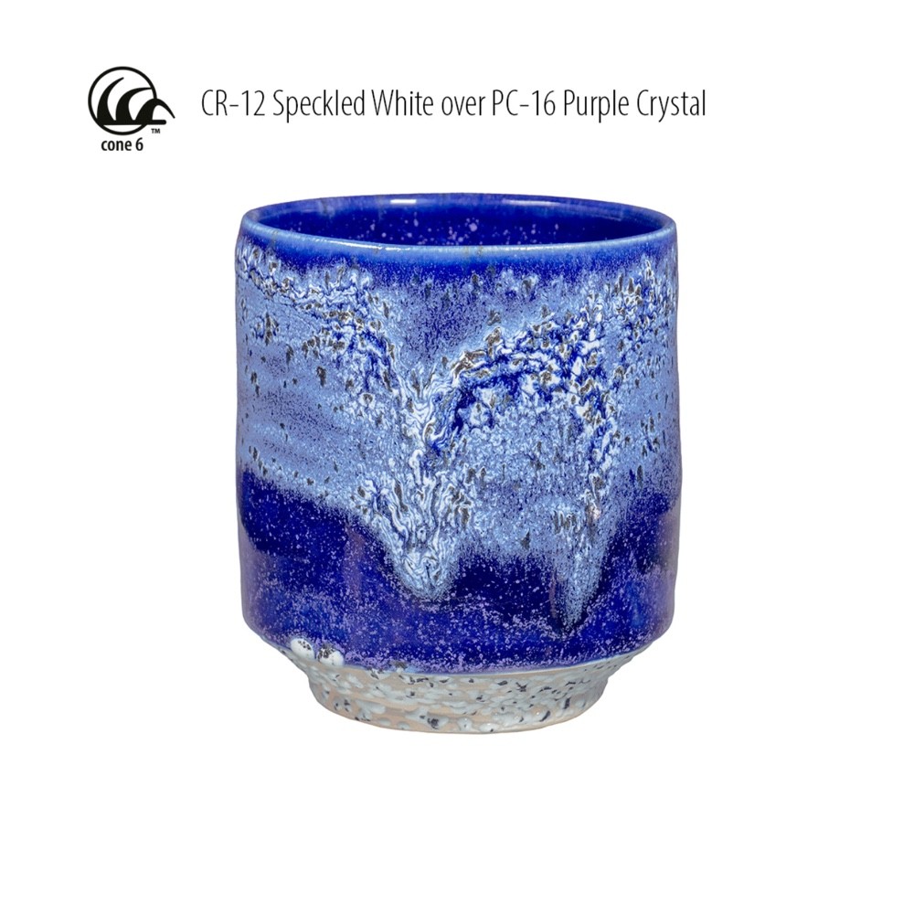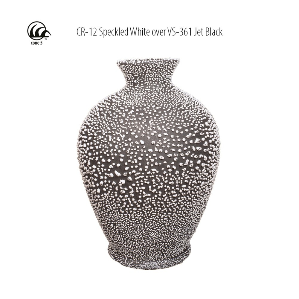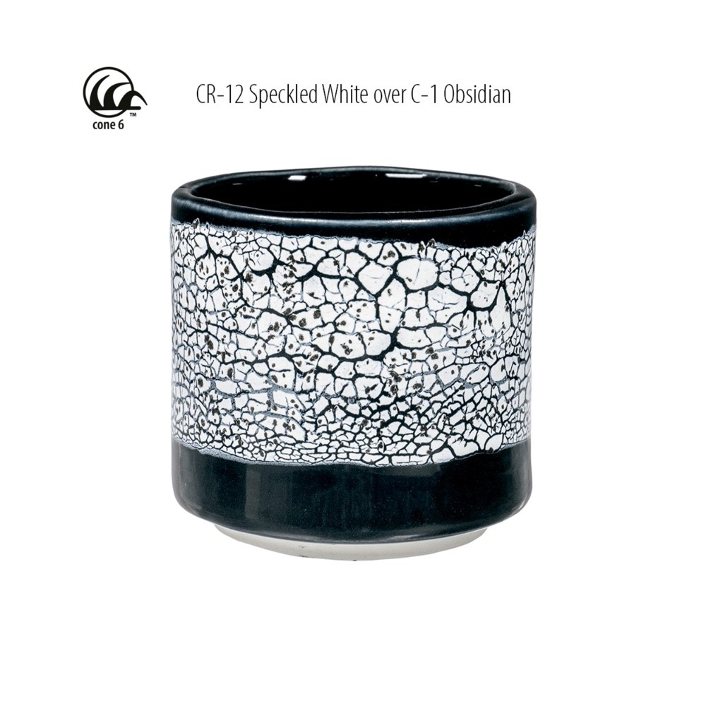 AMACO CR-12 Crawls glaze is a glossy white glaze with black specks that, when fired, crawls into raised shapes of varying sizes and forms. The result is a surface marked by unpredictable, natural patterns that add unique texture and visual interest to each piece.