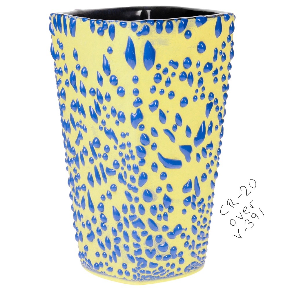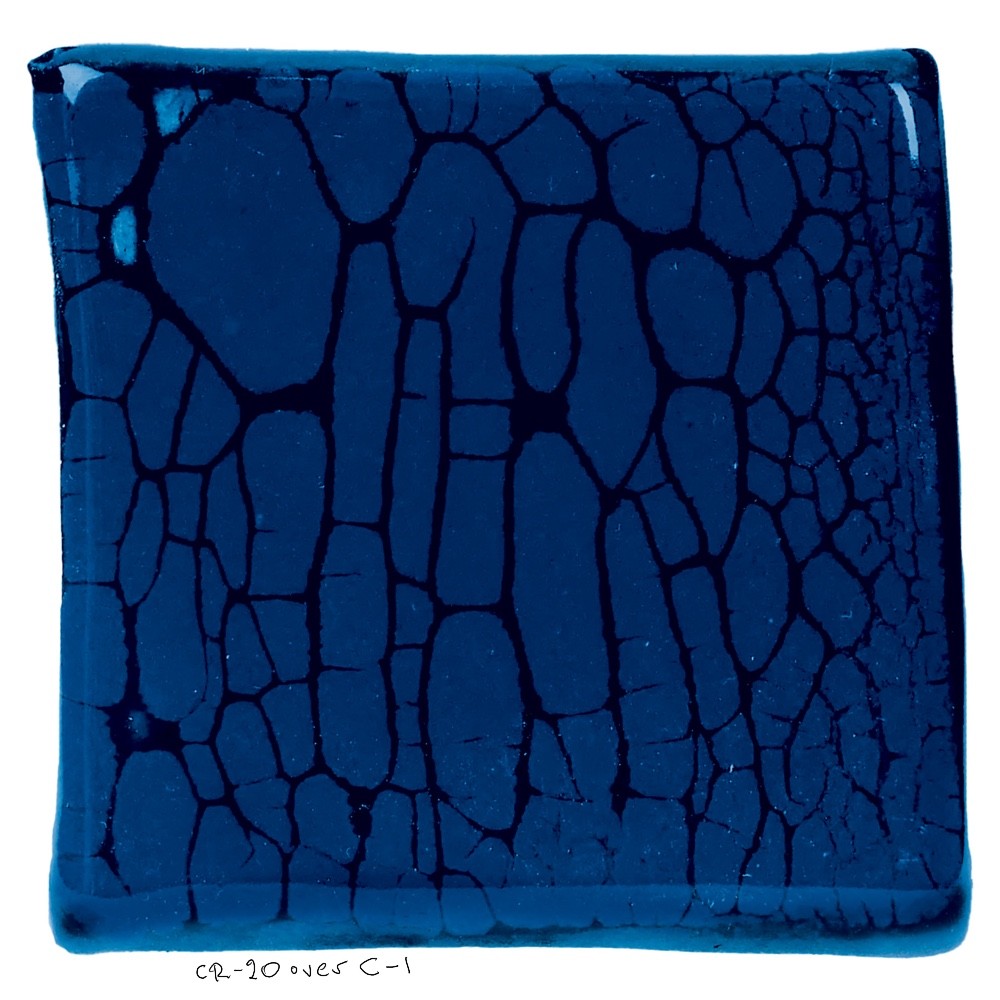 AMACO CR-20 is a glossy dark blue glaze that, when fired, crawls into raised shapes of varying sizes and forms. The result is a surface marked by unpredictable, natural patterns that add unique texture and visual interest to each piece.