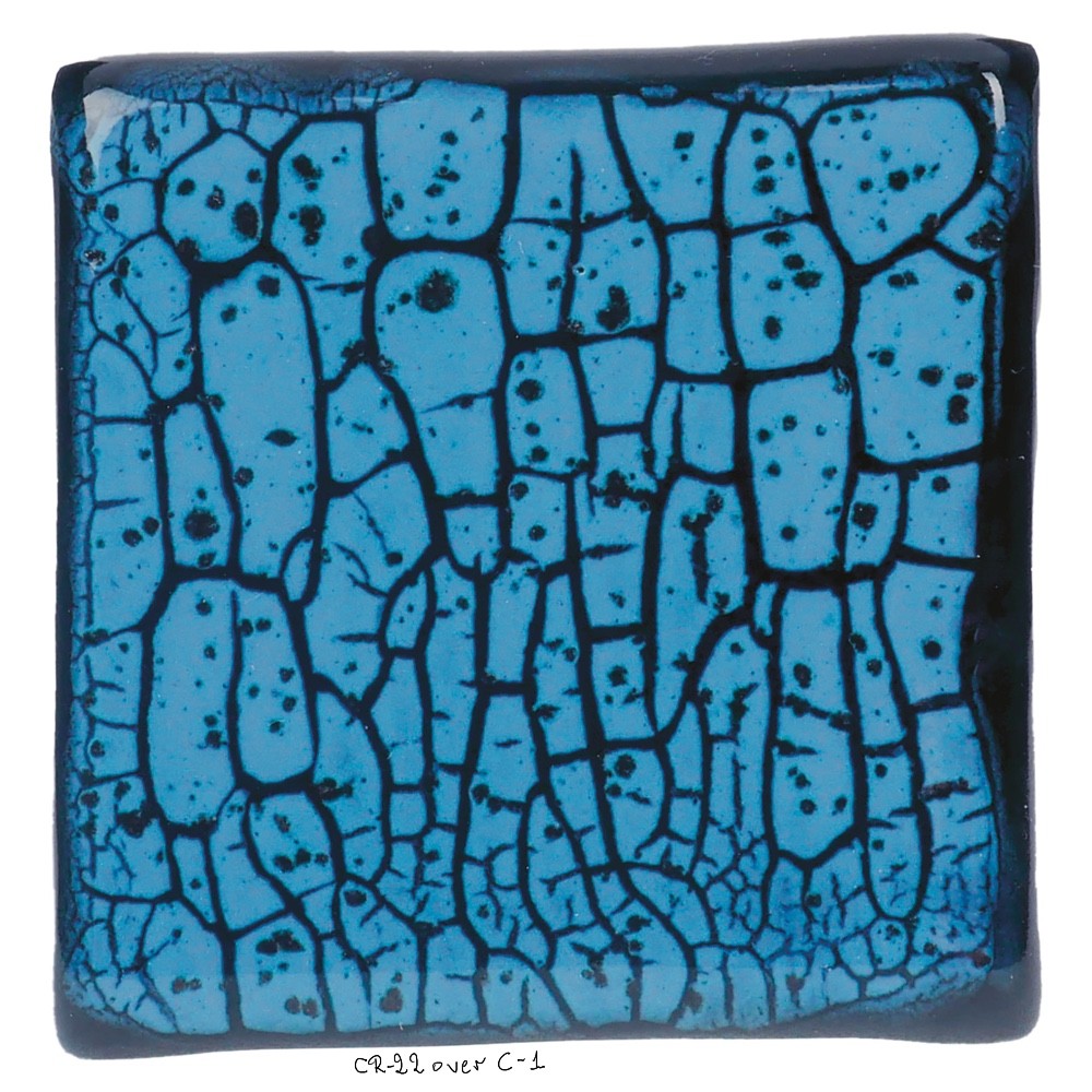 AMACO CR-22 is a glossy teal glaze with black specks that, when fired, crawls into raised shapes of varying sizes and forms. The result is a surface marked by unpredictable, natural patterns that add unique texture and visual interest to each piece.