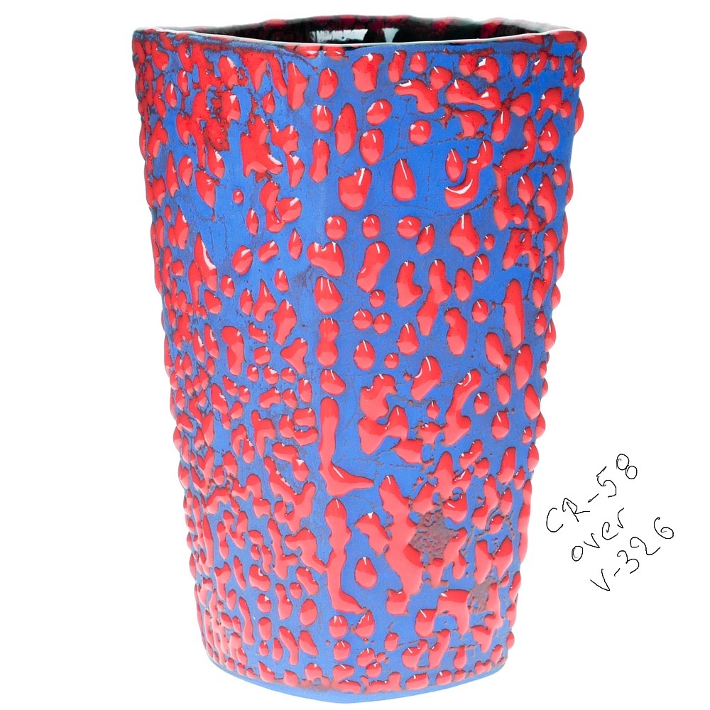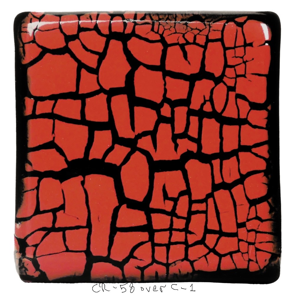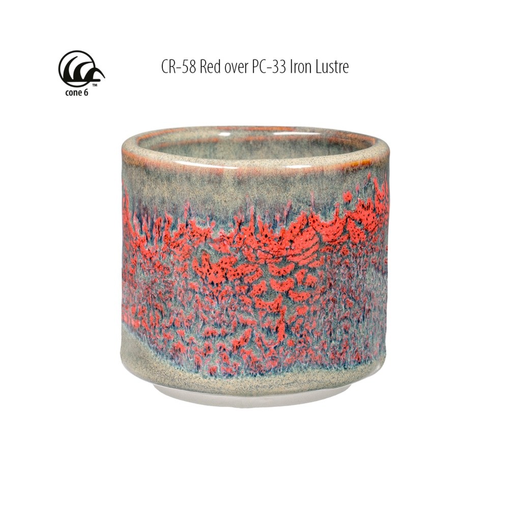 AMACO CR-58 Red is a glossy red glaze that, when fired, crawls into raised shapes of varying sizes and forms. The result is a surface marked by unpredictable, natural patterns that add unique texture and visual interest to each piece.
