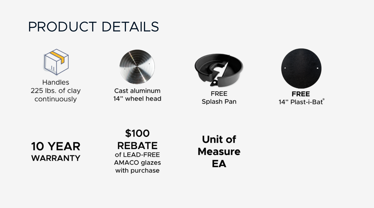 • Permanent magnet 3/4 hp, 7 amp DC motor -- allows the user to work with up to 225 lbs. of clay