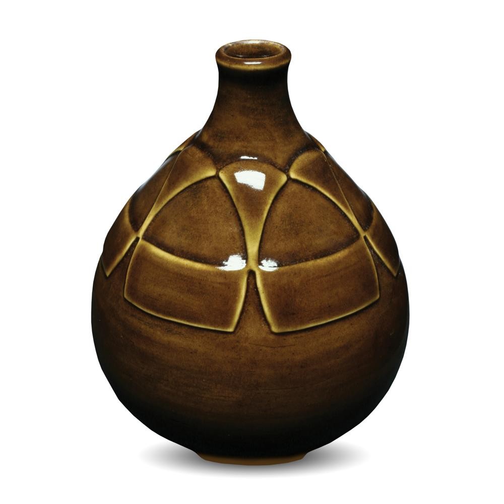 This 100% mixable celadon glaze is a glossy medium brown that pools darker brown and accents textured ware like the ancient glazes it is meant to imitate.