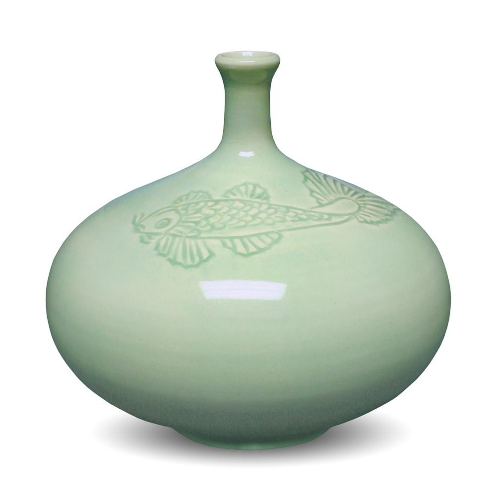 This 100% mixable celadon glaze is a light, glossy blue-green that pools darker turquoise and accents textured ware like the ancient glazes it is created to imitate.