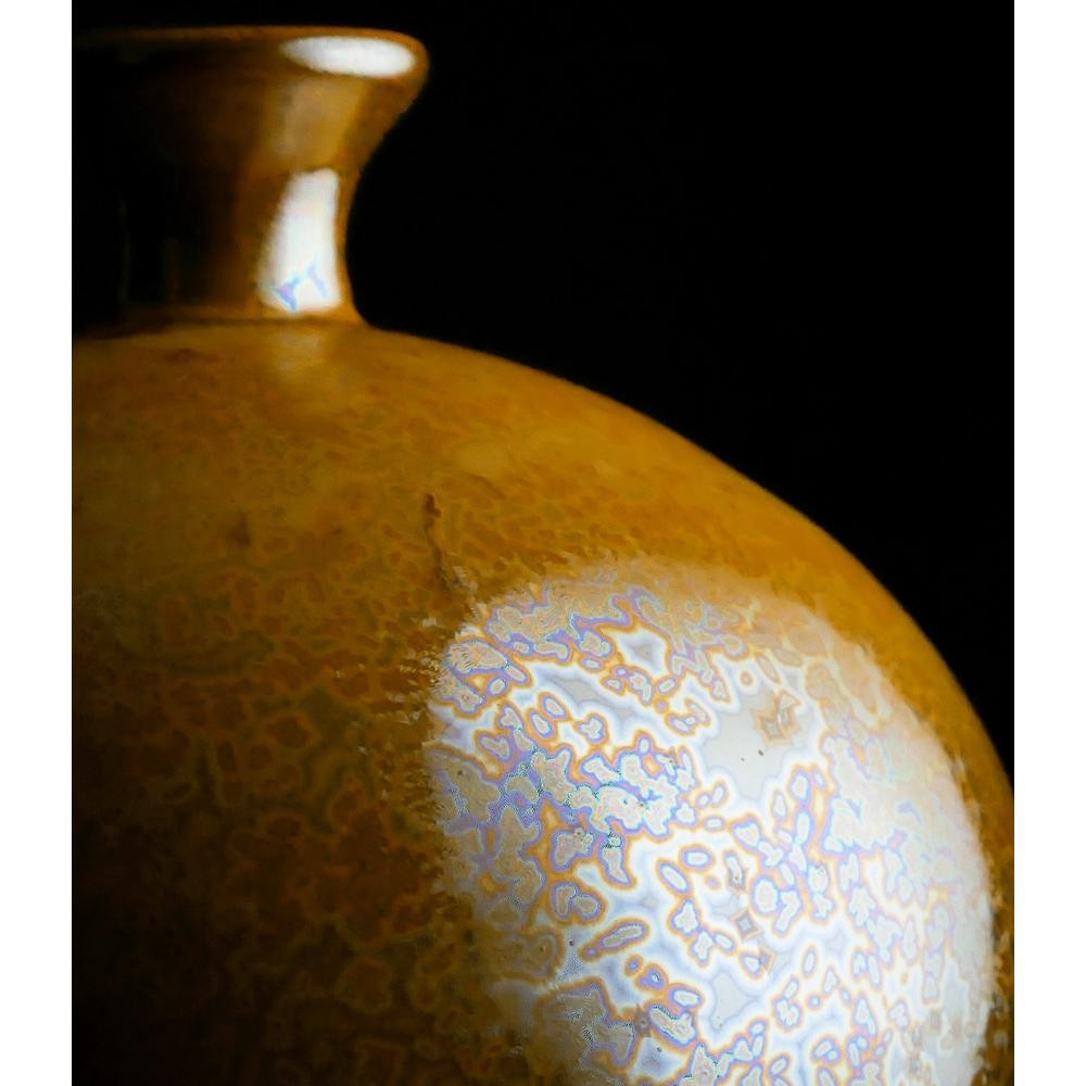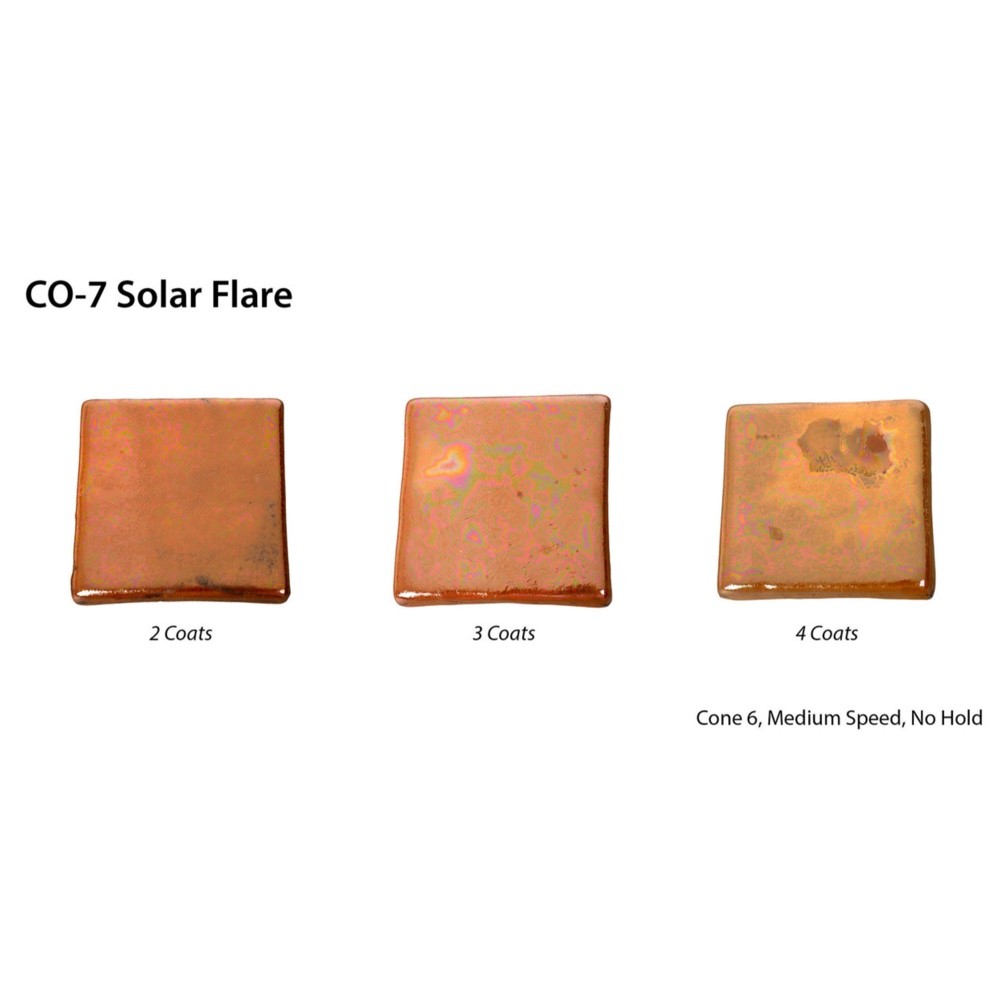 Solar Flare is a highly fluid light brown glaze with an iridescent crystalline surface. Opaque and glossy with a slight texture on the crystals.