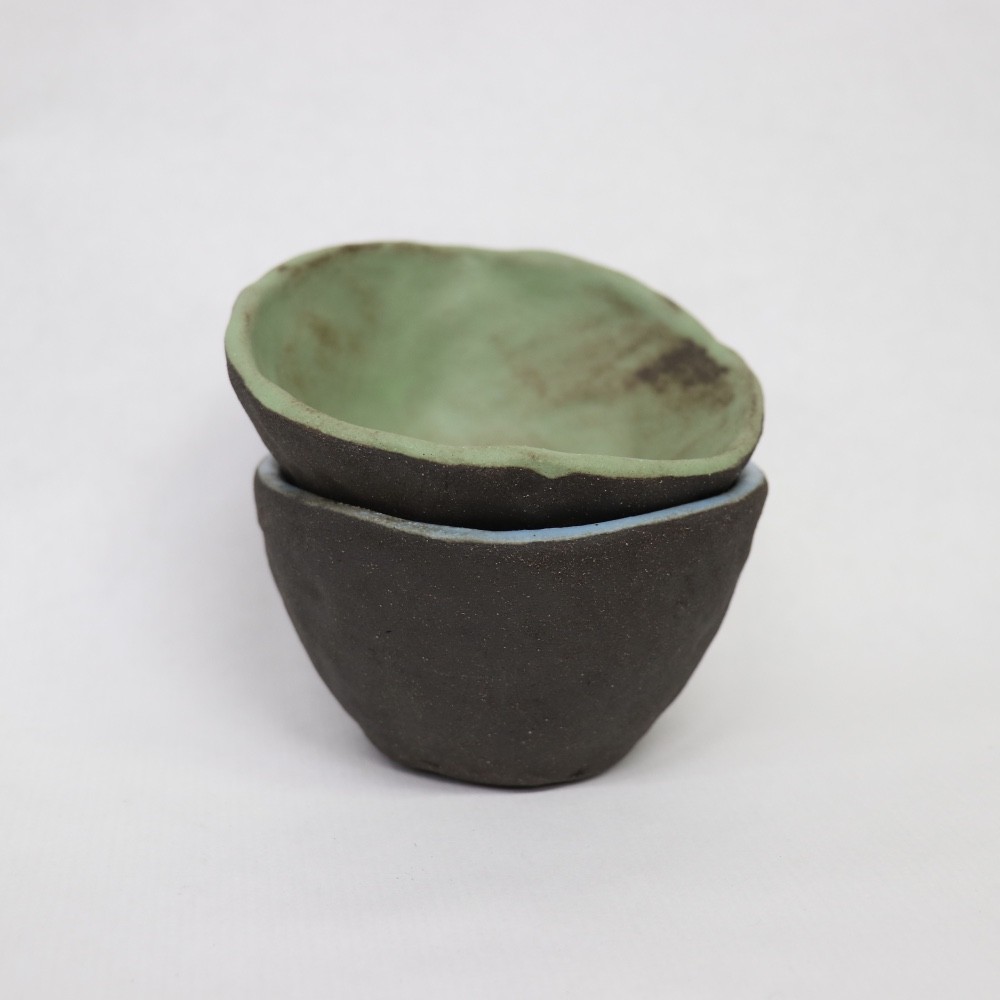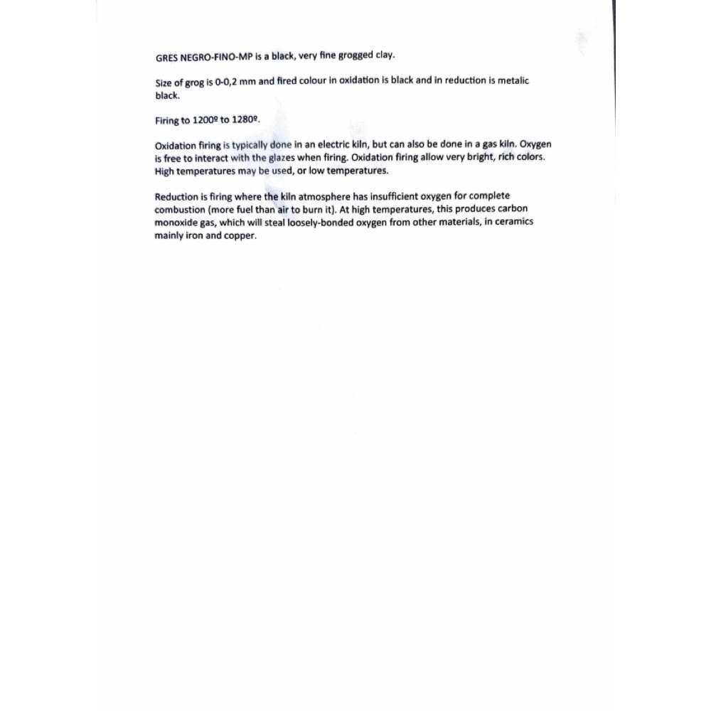Fine black firing stoneware. Firing temperature 1200 - 1250 Celsius. Size of very fine grog is 0-0,2 mm and fired colour in oxidation is black and in reduction is metallic black.