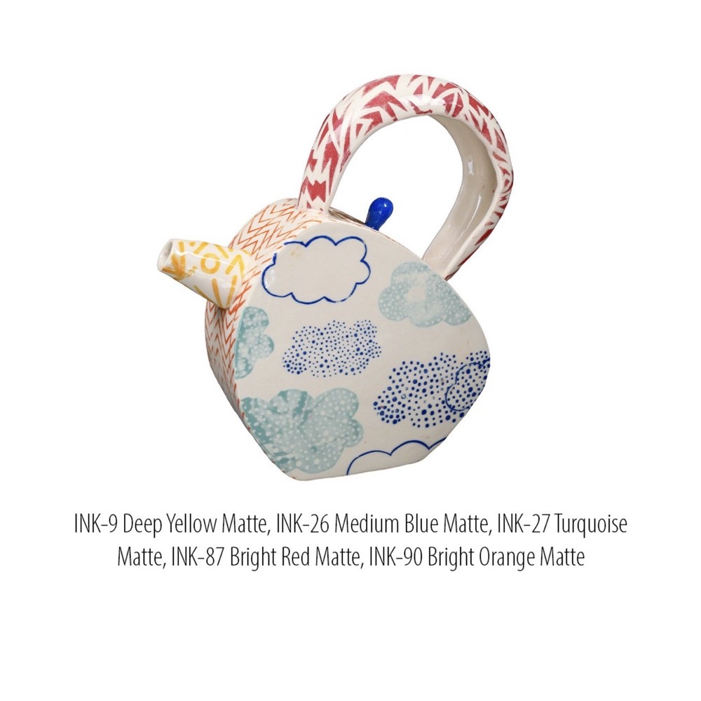 Like an underglaze, this Deep Yellow Matte Ink fires to a matte finish that requires a clear glaze to be considered food-safe.