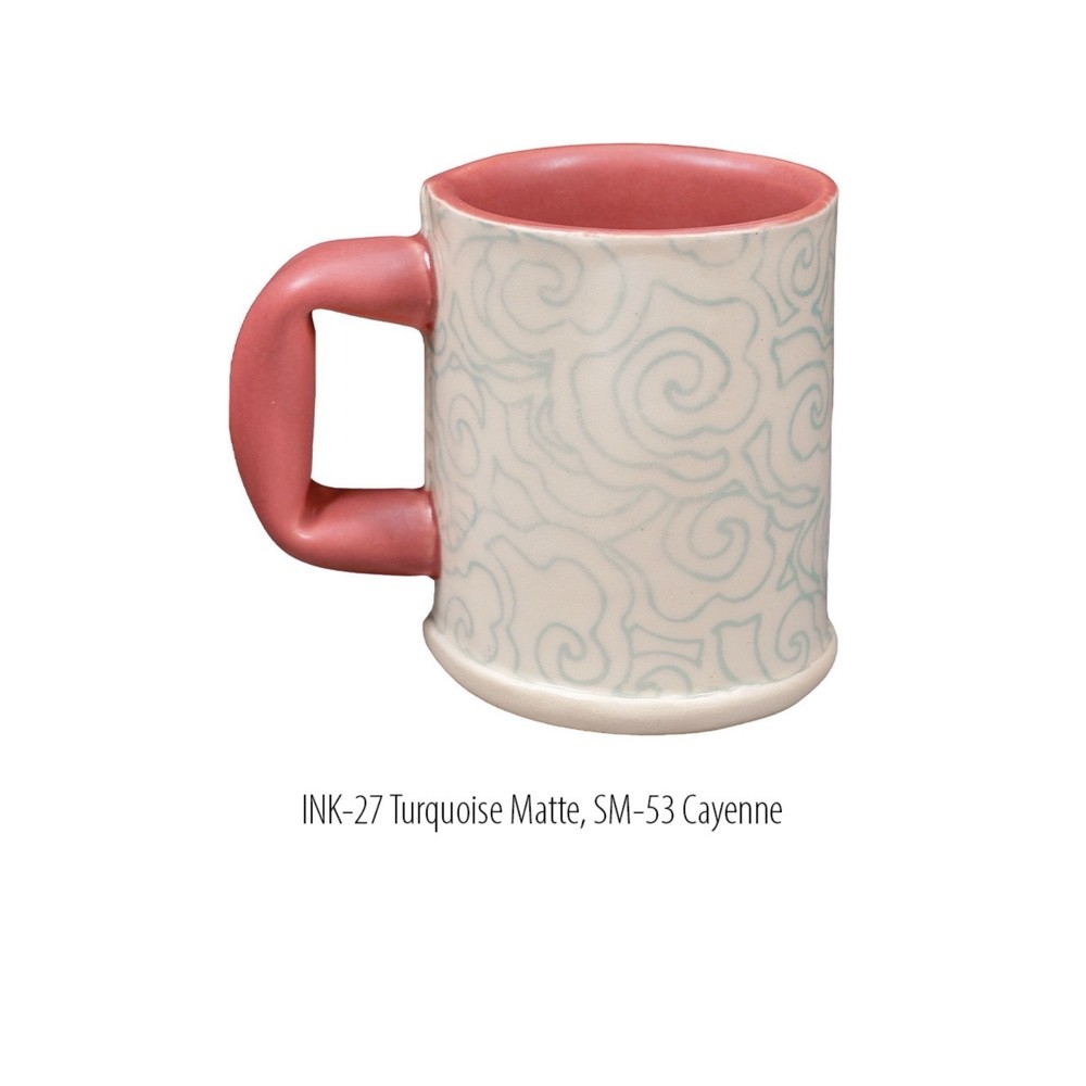 Like an underglaze, this Turquoise Matte Ink fires to a matte finish that requires a clear glaze to be considered food-safe.
