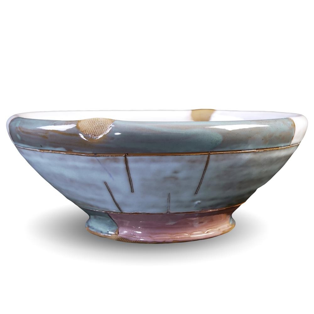 O-12 Tawny is an active, flowing low-fire glaze that breaks clear over texture and pools a soft, sandy yellow where thick. Because of its tendency to break and expose the clay body beneath, this glaze looks stunning over white or any colour - especially terra cotta - clay and over textured ware that has been painted with underglaze.