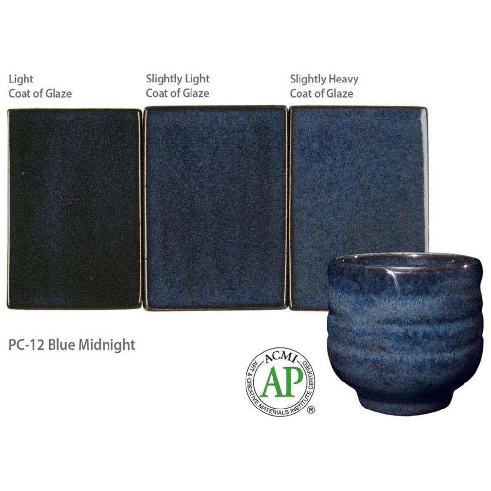 Blue Midnight is a glossy black glaze that breaks into blue highlights where thick. This glaze is good for textured work and also layers well with other Potter's Choice Glazes.