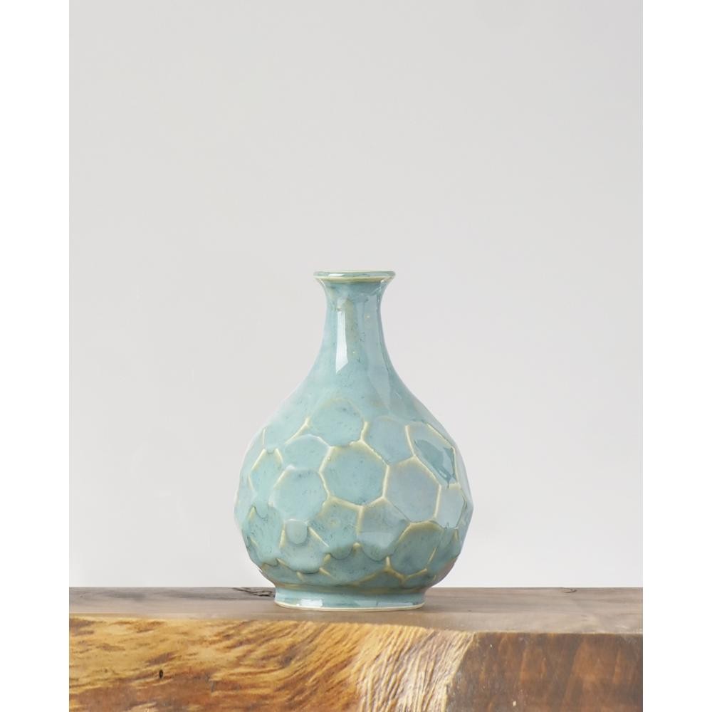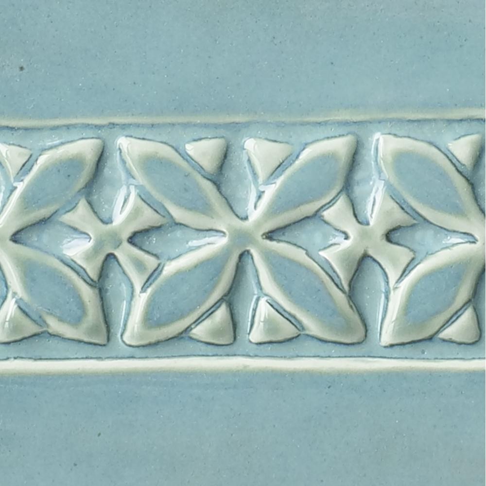 The cool tones of Blue Lagoon break milky green and pool into light blue shallows when applied over deep texture. When heavier coats are applied this allows the glaze to float up and create interesting surface variations similar to tides in a blue lagoon.