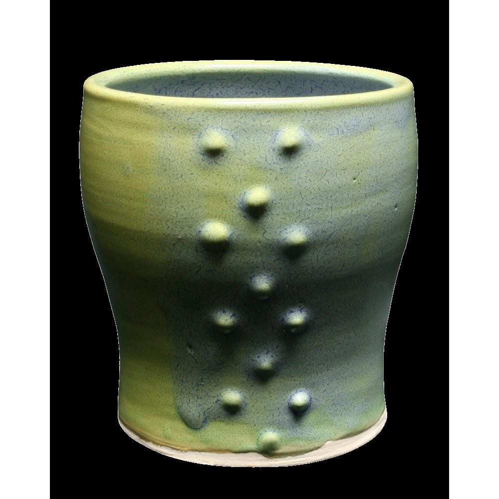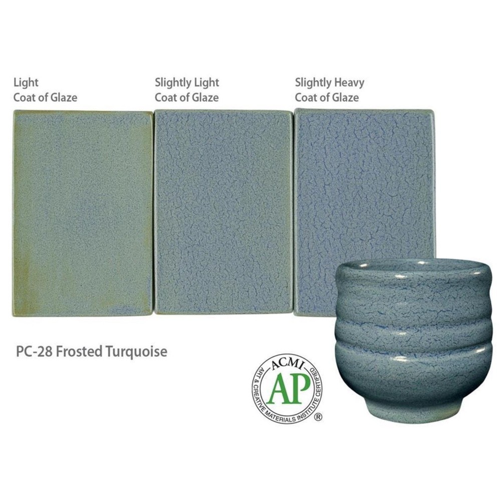 Frosted Turquoise is an opaque gray-blue glaze that appears to crackle over deep blue but has a smooth, satiny surface. This glaze is a great, detailed surface decoration for subtle, simple forms.