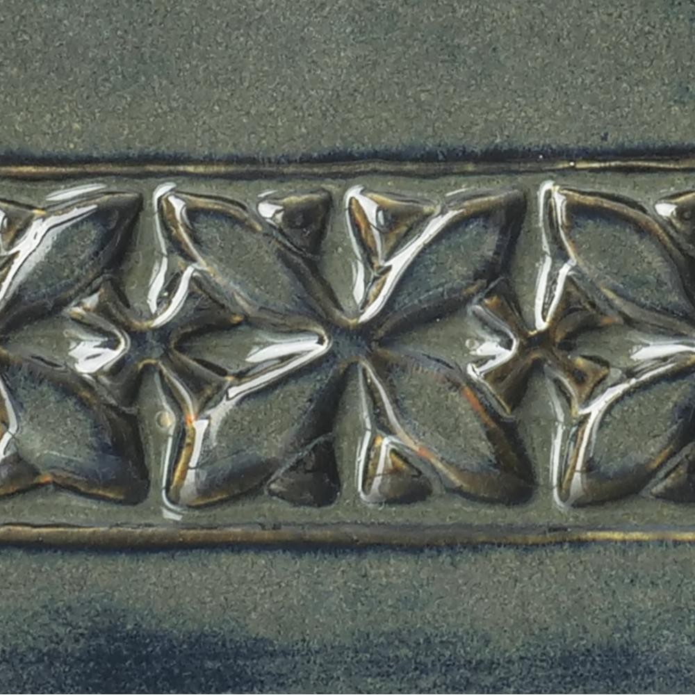 The sandy, dark brown tones of River Rock feather into a beautiful ebony before breaking into a rich amber when applied over texture. Subtle green-grey honeycomb shapes appear underneath the amber breaks when this glossy glaze is applied on vertical surfaces.