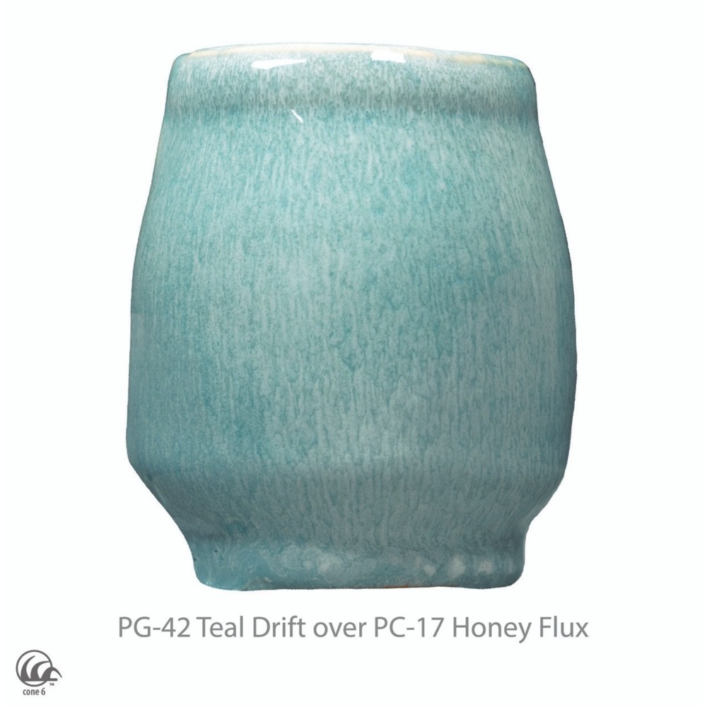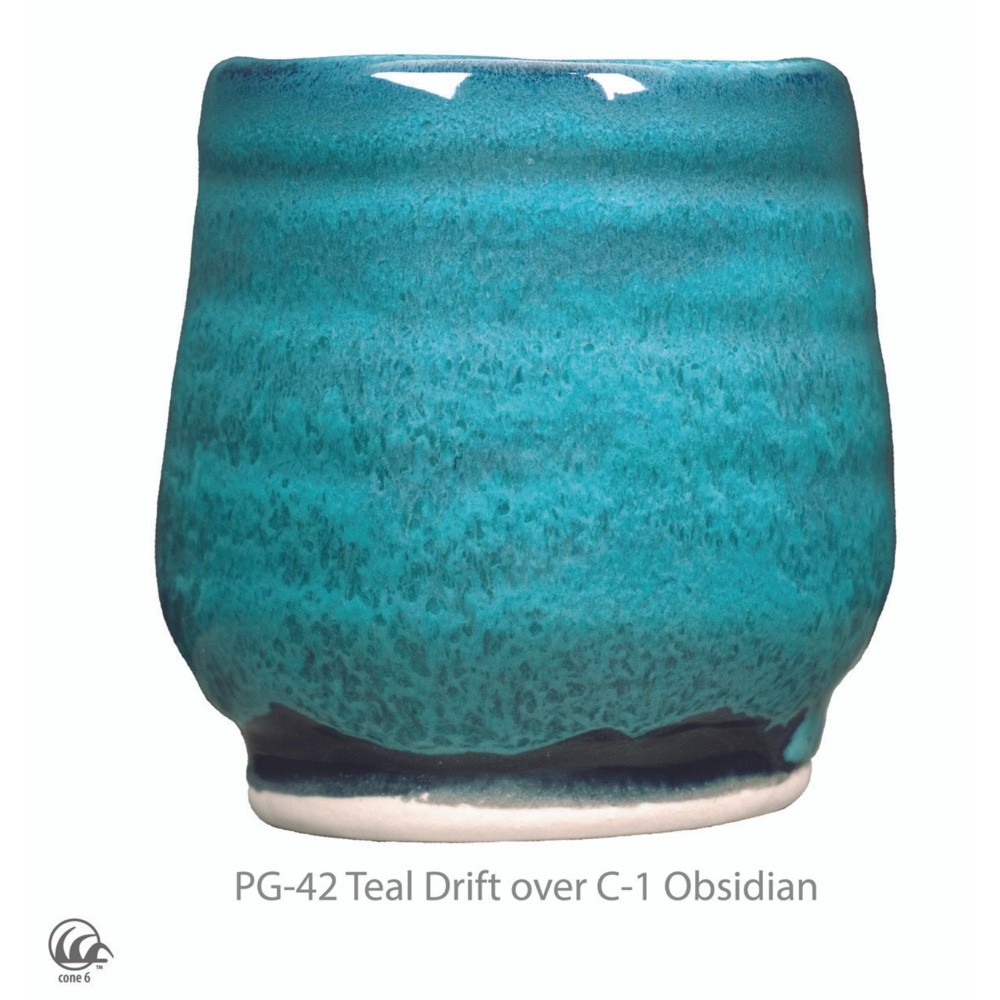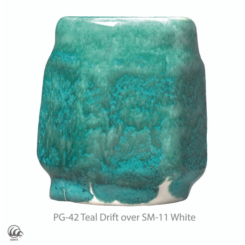 A vivid turquoise with a subtle spots where thick, PG-42 Teal Drift is a rich, tropical color.