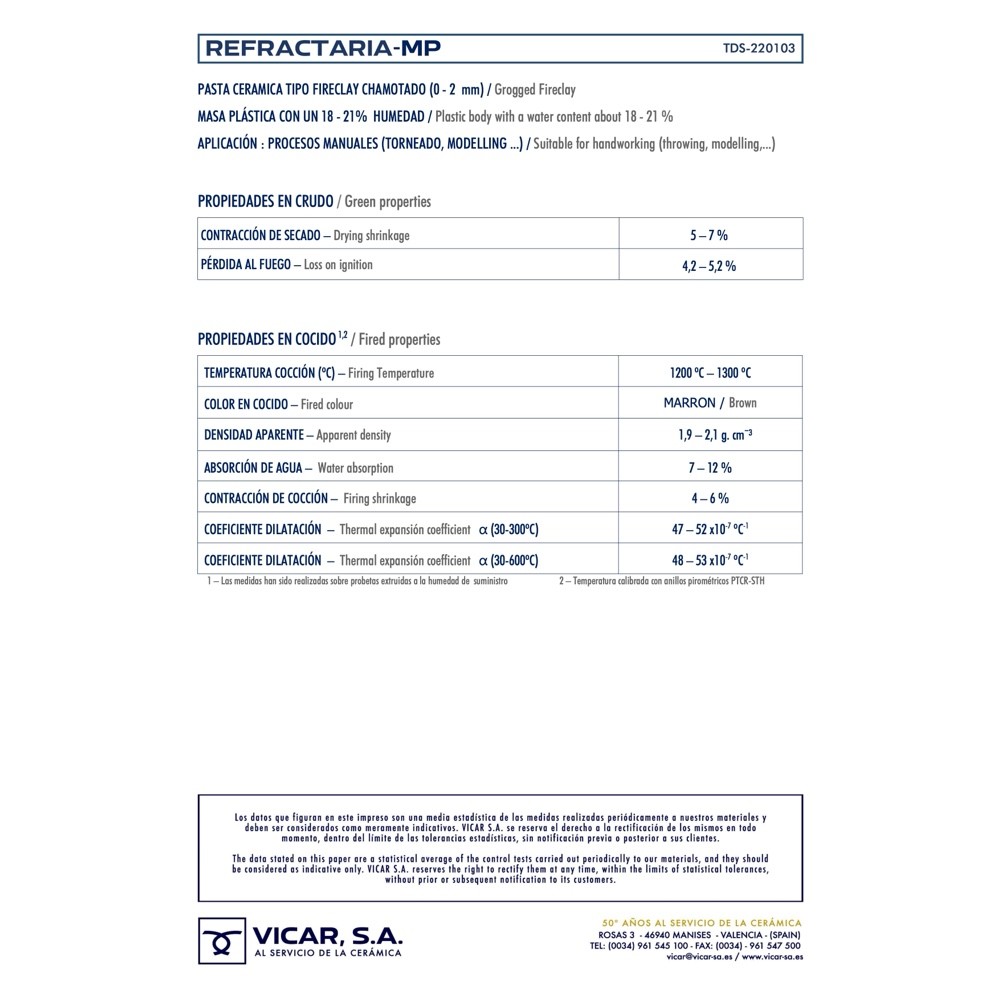 PASTA REFRACTARIA-MP Spanish stoneware brown grogged clay from VICAR, S.A. (0-2mm grogg)