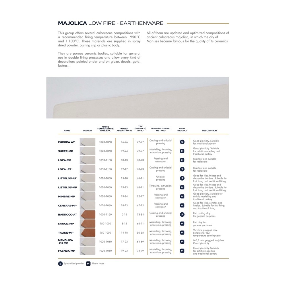 Red firing ceramic body Spanish earthenware clay by VICAR, S.A.