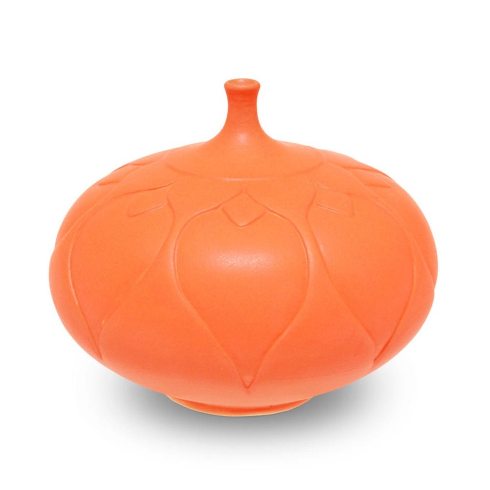Satin Matte Orange is an opaque, buttery orange glaze that accentuates textured ware and boasts a classic art deco appearance.