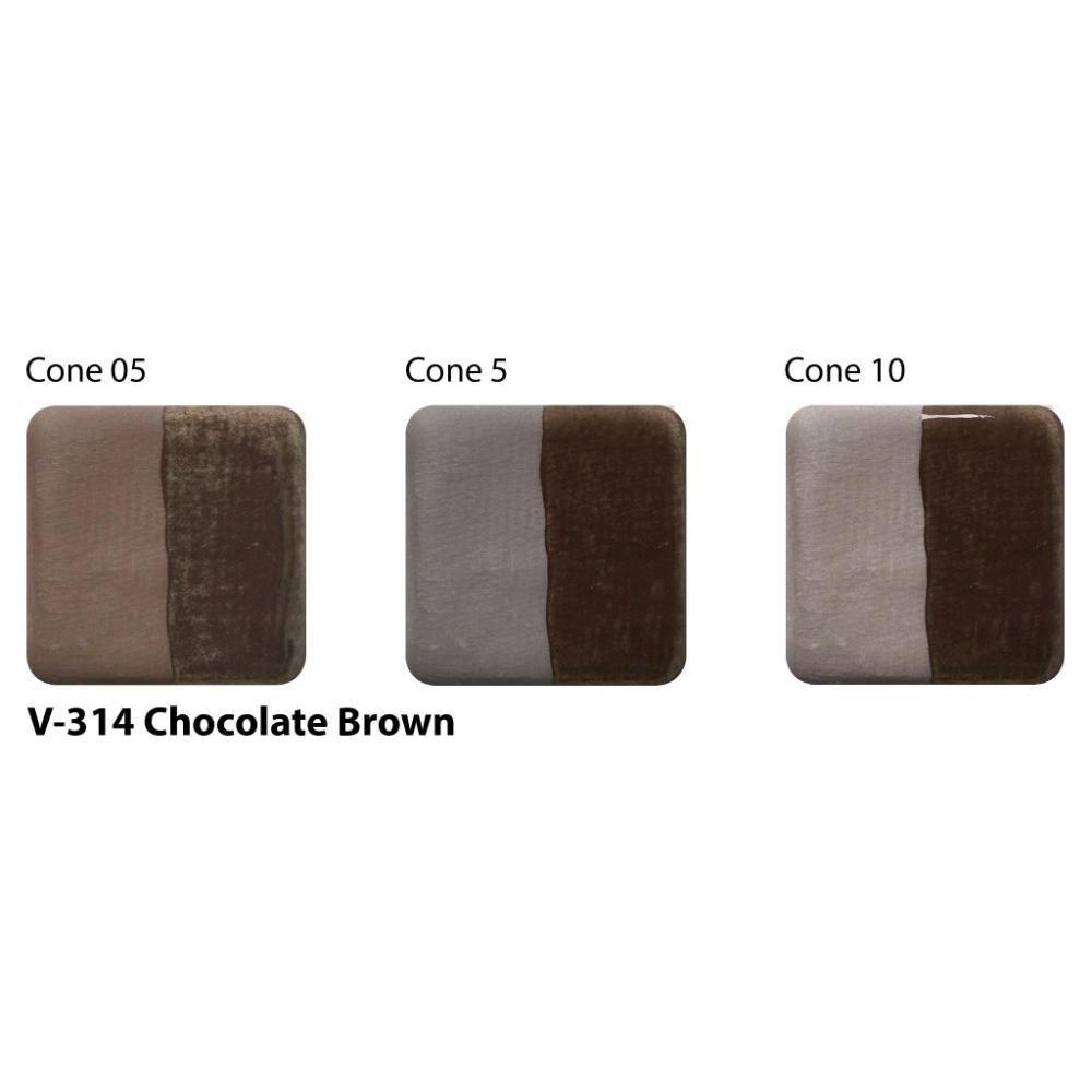 Chocolate Brown Velvet Underglaze is a deep brown that is warmest at cone 05. The color darkens at cone 5, and is darkest but less saturated at cone 10. This underglaze looks great beneath a few coats of a clear glaze.