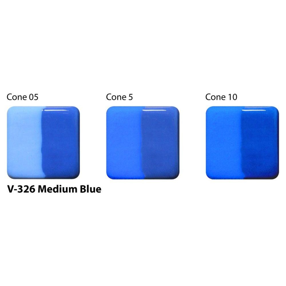 Medium Blue Velvet Underglaze is a brilliant primary blue that is vivid at cone 05, darker at cone 5, maintaining its blue color. A clear glaze over Medium Blue will significantly darken the color at any temperature.