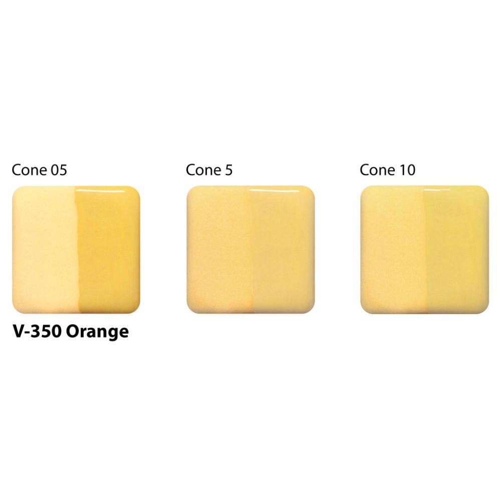 Orange Velvet Underglaze is a golden color that is bright at cone 05, softens to a toasty beige at cone 5, and becomes toastier at cone 10. A clear glaze accentuates the color of the underglaze significantly at any temperature.