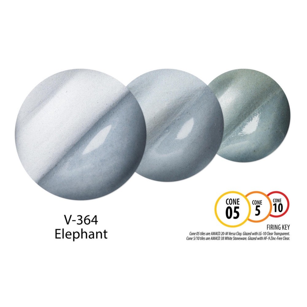 Elephant Velvet Underglaze is a light, ashy shade when fired to cone 05, darkens to a deeper gray at cone 5 then turns to a grayish-black akin to elephant skin when fired to cone 10. A clear glaze accentuates the color of the underglaze significantly at any temperature.